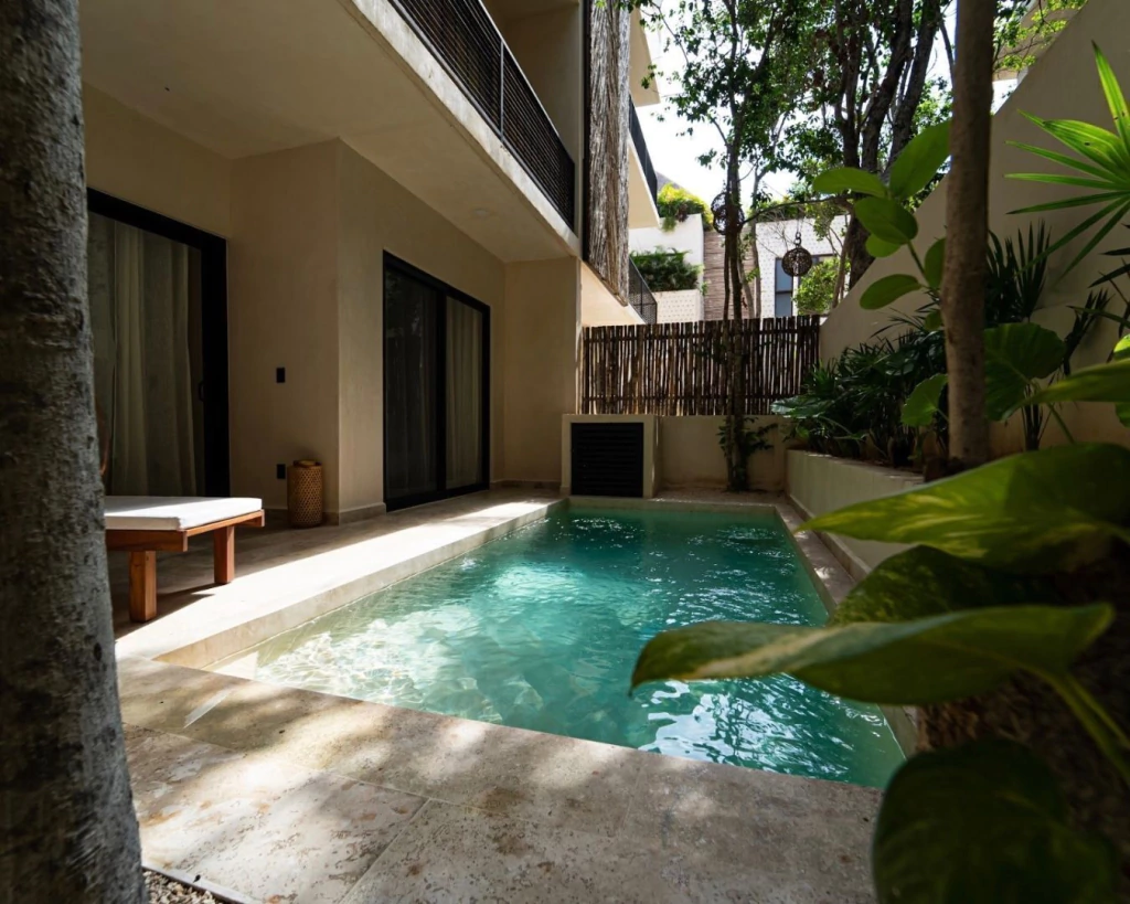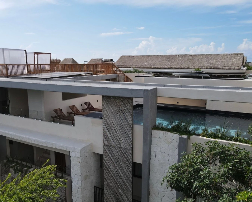Ubicado dentro de Luum Zama, Aldea Zama (Tulum), este proyecto ofrece unidades tipo hotel boutique de 1, 2 y 3 habitaciones en planta baja, primer nivel y penthouses con roof y alberca privada. Las superficies van desde 100 m² hasta 205 m², rodeadas de vegetación y ubicadas dentro de una comunidad residencial premium.