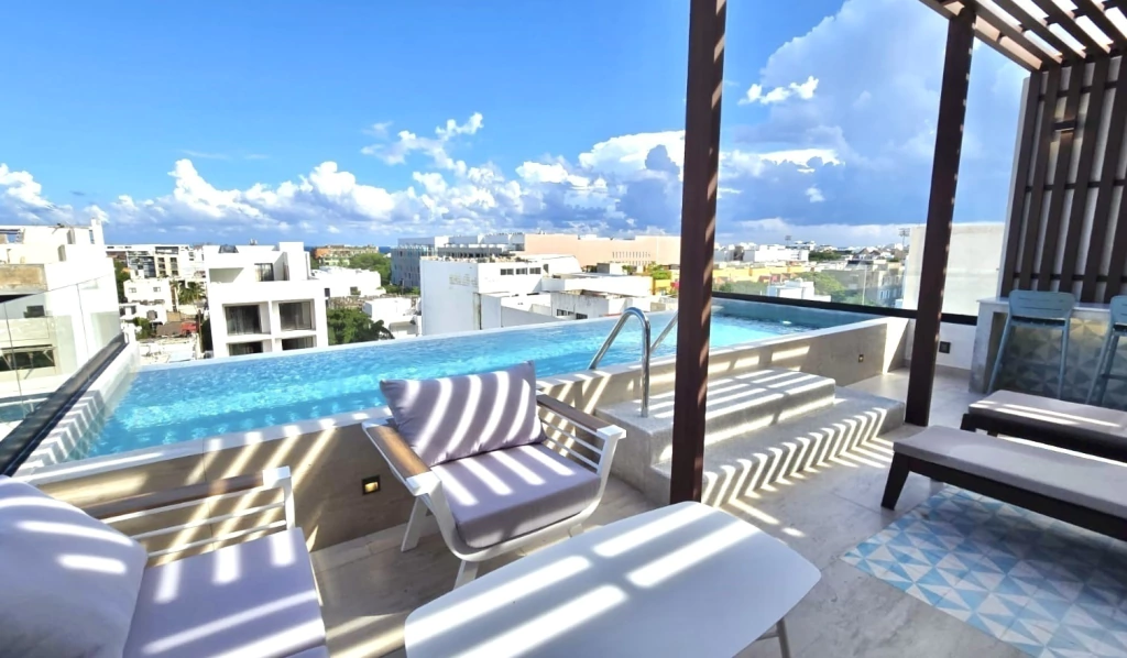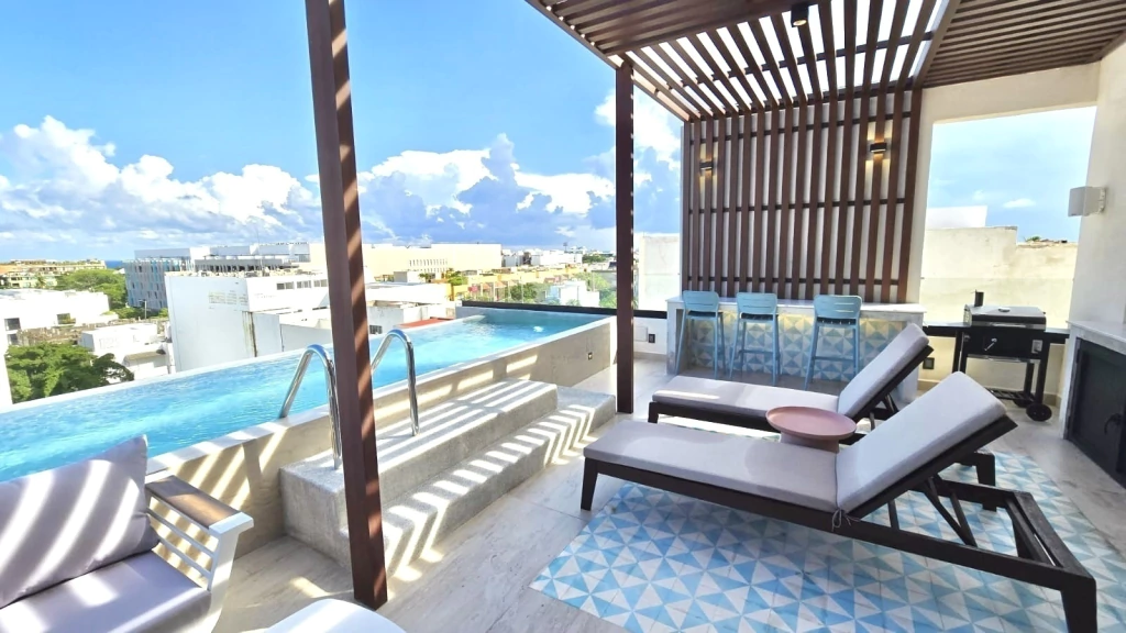 Rooftop con alberca y vista al mar